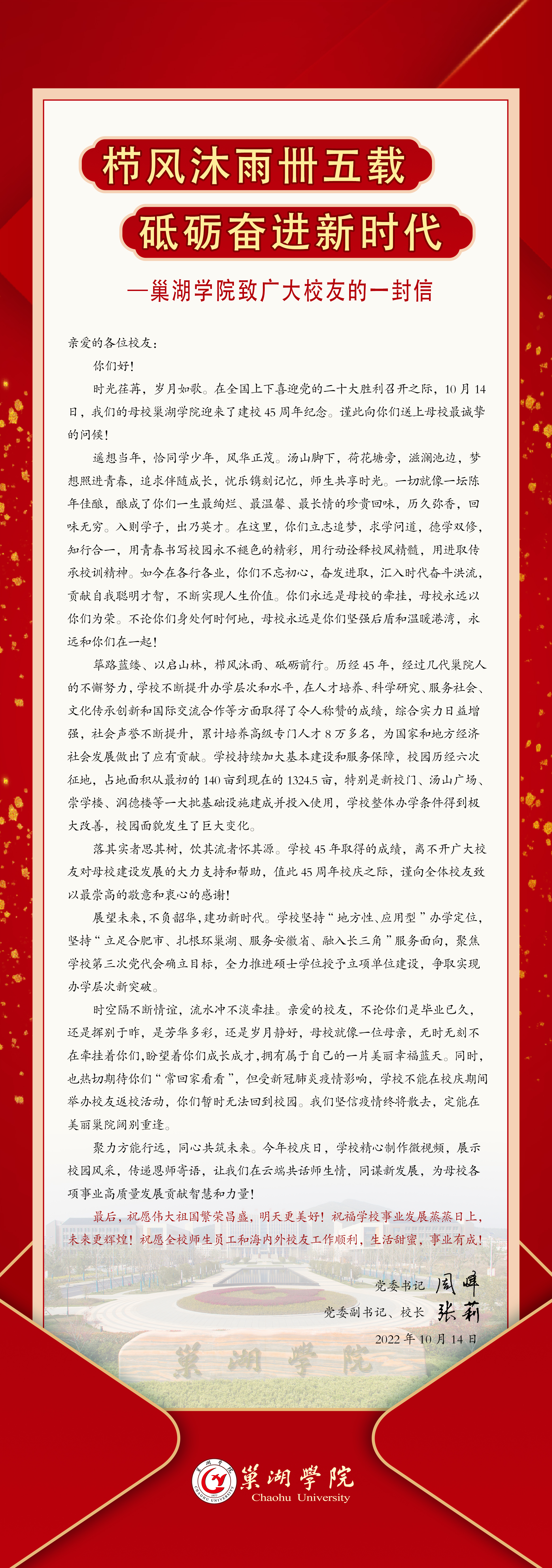 栉风沐雨卌五载 砥砺奋进新时代 必赢76net官网致广大校友的一封信