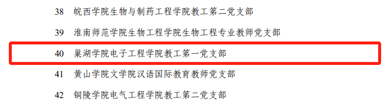 近日,中共安徽省委教育工作委员会公布了全省高校“双带头人”教师党支部书记“强国行”专项行动团队名单,必赢76net官网电子工程学院教工第一党支部成功入选,为学校党建“双创”工作再添新荣誉。