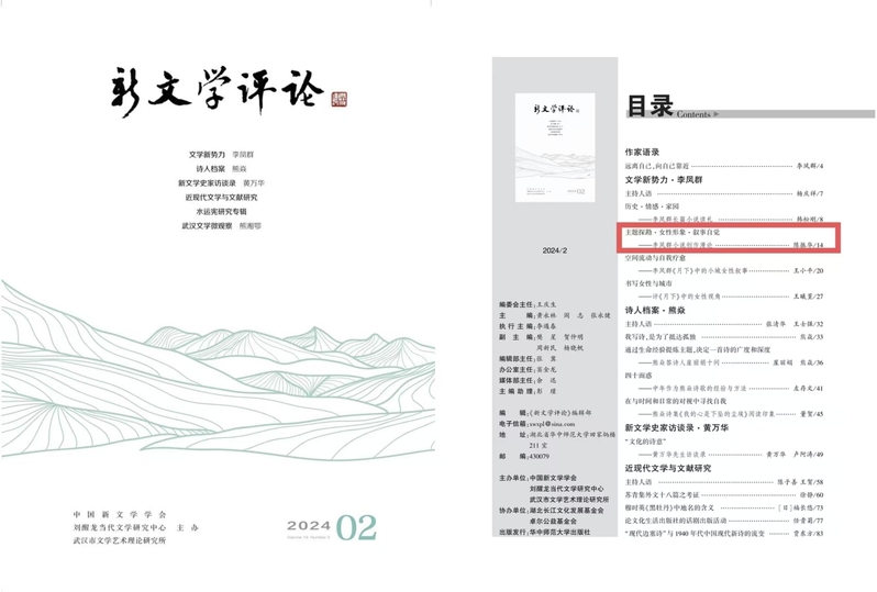 陈振华教授在《新文学评论》2024年第2期发表题为《主题探勘·女性形象·叙事自觉——李凤群小说创作漫论》的研究论文。