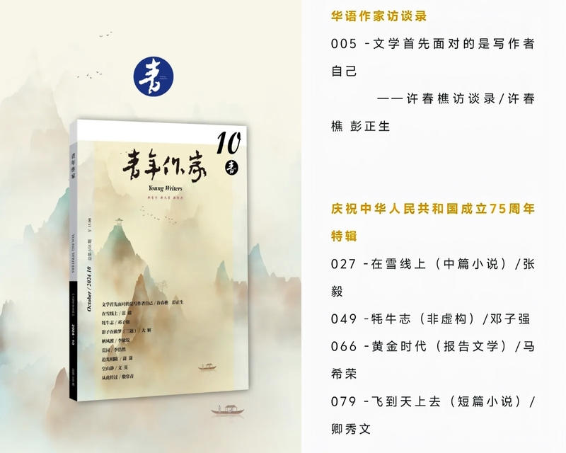 彭正生教授与安徽省作家协会主席许春樵的访谈《文学首先面对的是写作者自己——许春樵访谈录》在《青年作家》2024年第10期刊出。