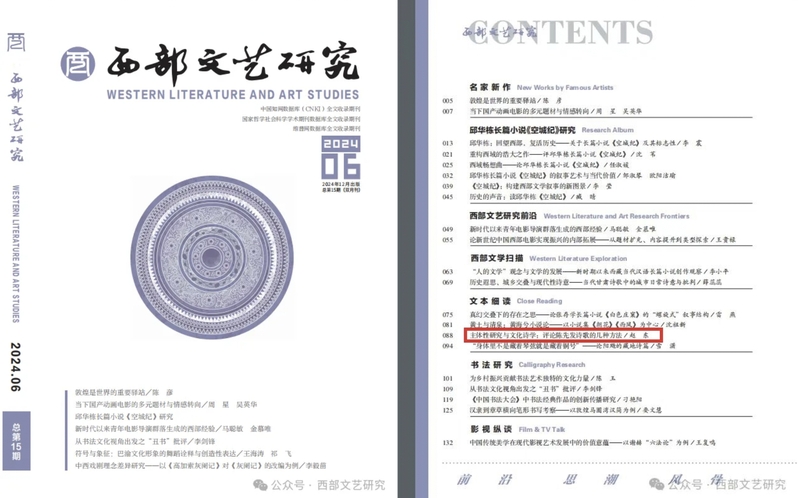 赵东教授在《西部文艺研究》2024年第6期发表题为《主体性研究与文化诗学:评论陈先发诗歌的几种方法》的研究论文。