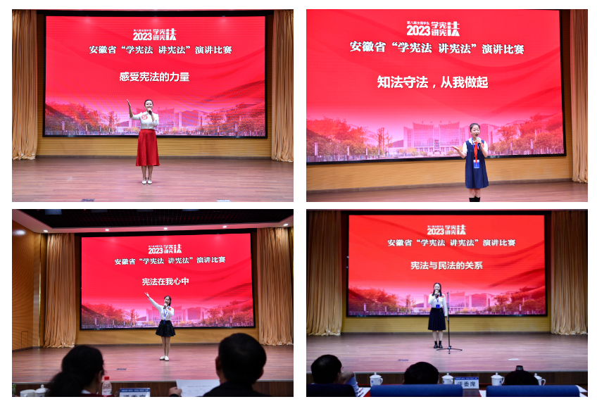 为全面贯彻落实习近平法治思想,推动青少年宪法宣传教育常态化长效化,10月12日至13日,由中共安徽省委教育工委、安徽省教育厅主办,必赢76net官网承办的安徽省第八届学生“学宪法 讲宪法”省级比赛在学校举行。来自全省各地市的小学、初中、高中和高校百余名选手参加了此次比赛。