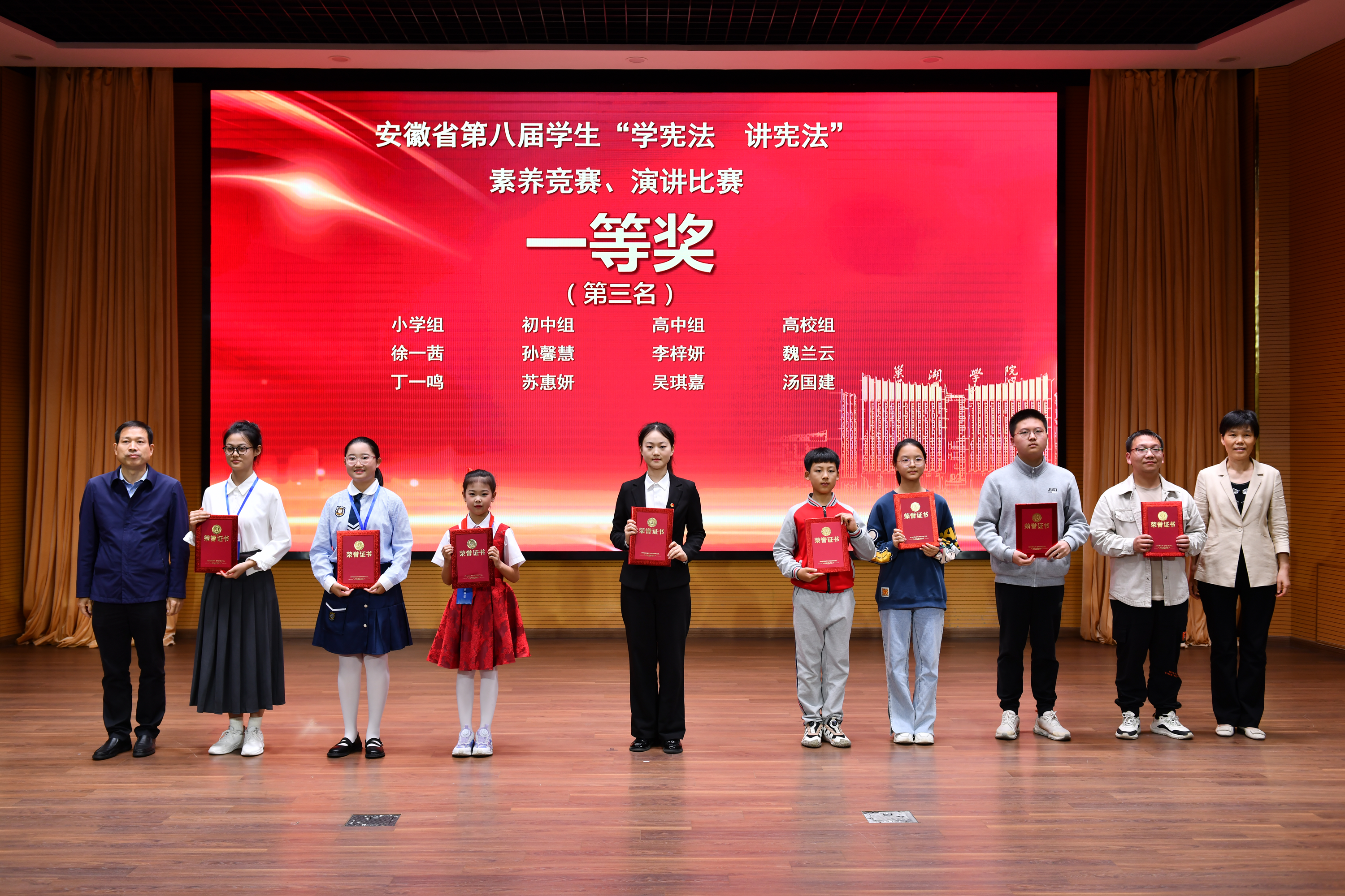 经过两天的激烈角逐,最终产生素养竞赛与演讲比赛小学组、初中组、高中组、高校组各组第一名共8名选手,他们将代表安徽省参加教育部举办的第八届全国学生“学宪法 讲宪法”总决赛。其中,文学与传媒学院王雅琴同学勇夺演讲比赛高校组第一名,实现学校参加该项赛事成绩的新突破。