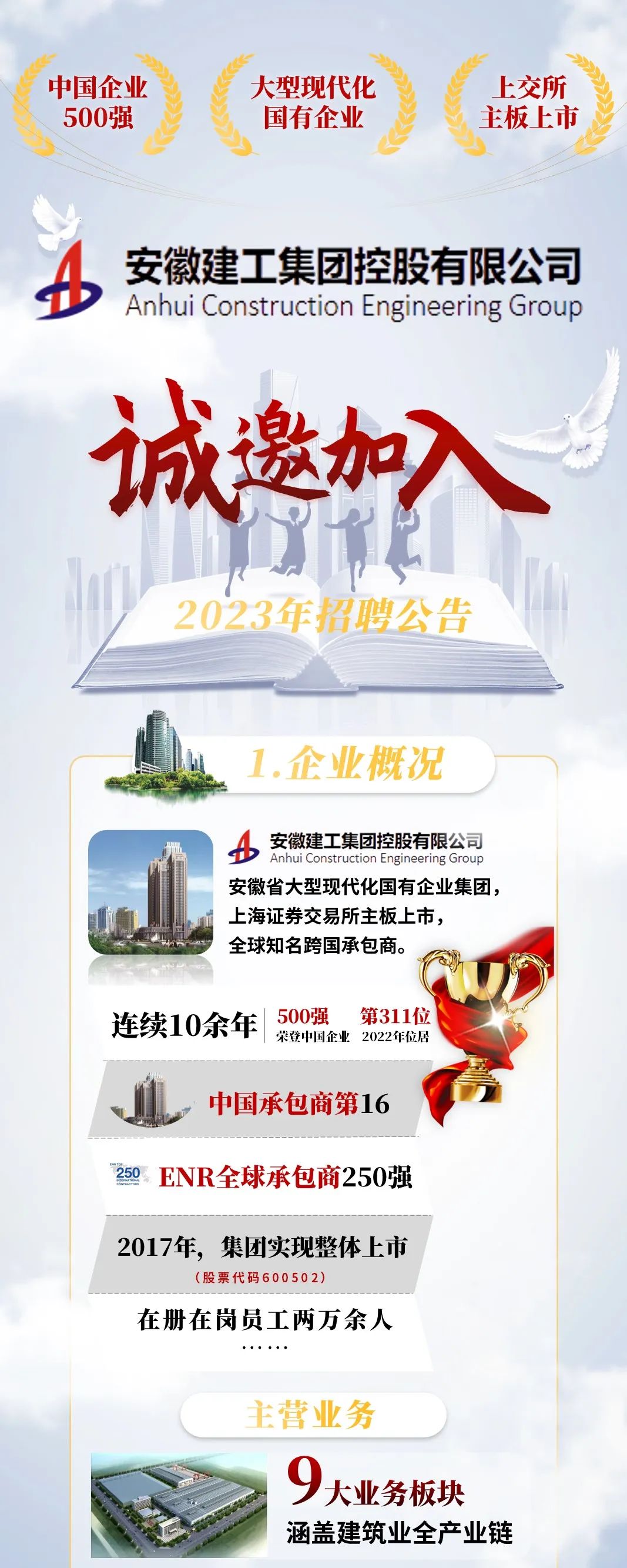 > 安徽建工集团控股有限公司2023年度招聘公告