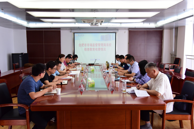 9月5日上午,合肥市教育收费专项检查工作领导组副组长、合肥市市场监管局副局长杨三龙一行7人来校检查教育收费工作。学校在第五会议室召开工作会议。会议由财务处处长刘亚平主持。学工部、教务处、后勤处主要负责人及相关工作人员参加会议。