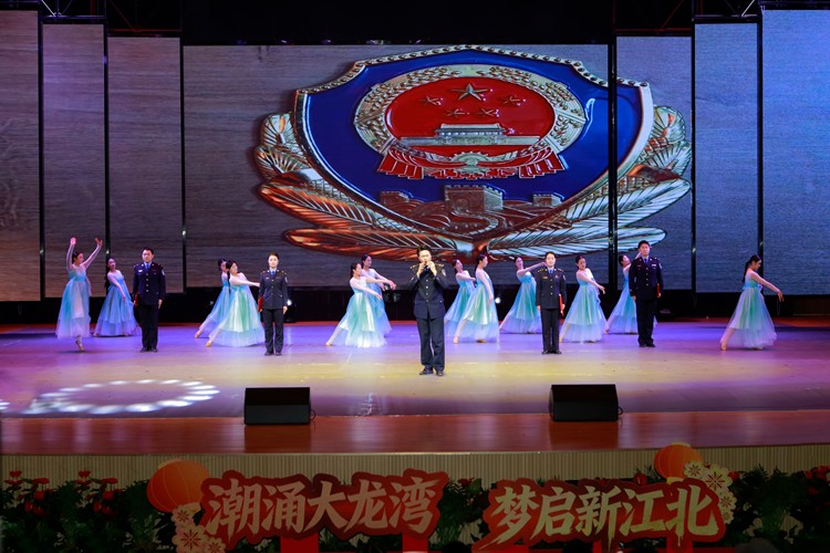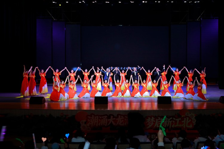 第一篇章“龙湾潮生”中,伟德学子带来的舞蹈《远古的呼唤》舞姿婀娜、张力十足,勾勒出龙湾大地的历史底蕴;学子们还为奇瑞捷途汽车的歌曲《云山》伴舞,悠扬歌声搭配灵动舞姿,绘就山水诗意与政校企同心的和谐画面。第二篇章“帆聚江北”里,伟德操舞《风华正茂》以多元舞姿尽显青年学子朝气活力;舞蹈队为鸠江公安分局的朗诵《少年壮志不言愁》伴舞,柔美舞蹈配合铿锵朗诵,刚柔并济间更衬公安队伍热血担当。第三篇章“汇流成海”中,伟德舞蹈《在希望的田野上》以灵动舞步描绘江北新区发展美好蓝图;伟德教师与弋矶山医院江北院区代表联袂演唱《新的天地》,荡气回肠的歌声传递出对新区未来的无限憧憬。最后,伟德师生与江北新区各单位携手放歌《我们都是追梦人》,用赤诚的旋律凝聚奋进力量,用合唱诠释团结担当。