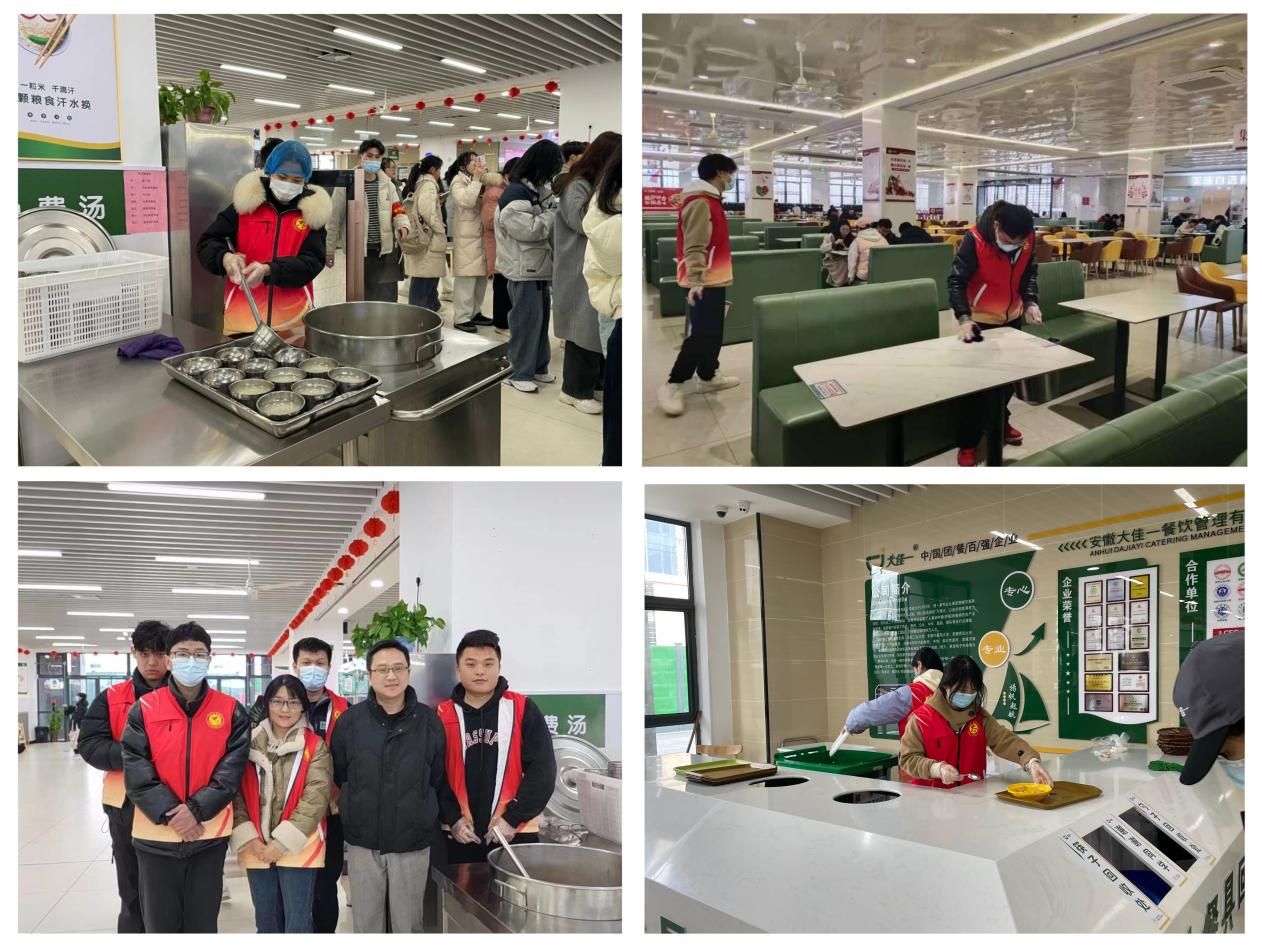 活动中,支部党员和系部志愿者一起深入食堂,在就餐期间为师生们提供热情周到的服务。志愿者分为两队,覆盖学院第一食堂和第二食堂,他们有明确的分工,整理桌椅,清理桌面,帮助回收餐具,打扫卫生等。并提醒同学们要节约粮食,杜绝浪费,提倡“光盘行动”,志愿者们充分发挥了不怕苦、不怕累的精神,认真履行职责,用实际行动践行志愿服务精神。