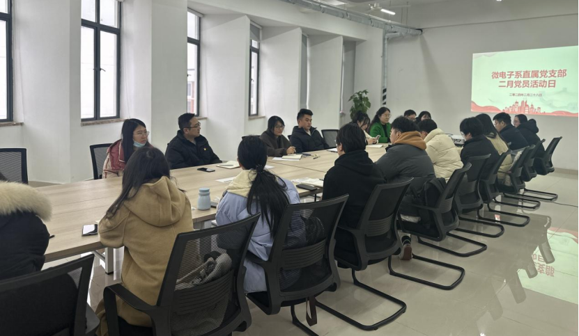 本网讯 本月28日13:00,微电子系直属党支部在7栋508会议室开展主题党日活动。本次会议由支部书记张铮主持,支部全体党员参会。