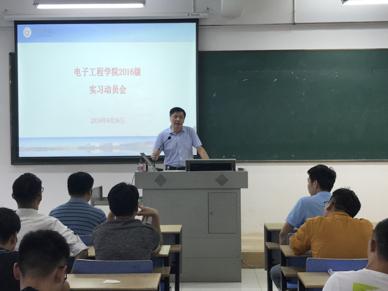 为做好2016级学生的实习工作,6月26日上午,电子工程学院于慎思楼中501教室召开学生实习动员会。电子工程学院党委书记陈海波、院长钱云、副院长叶松出席,2016级辅导员和2016级全体同学与会,会议由钱云主持。