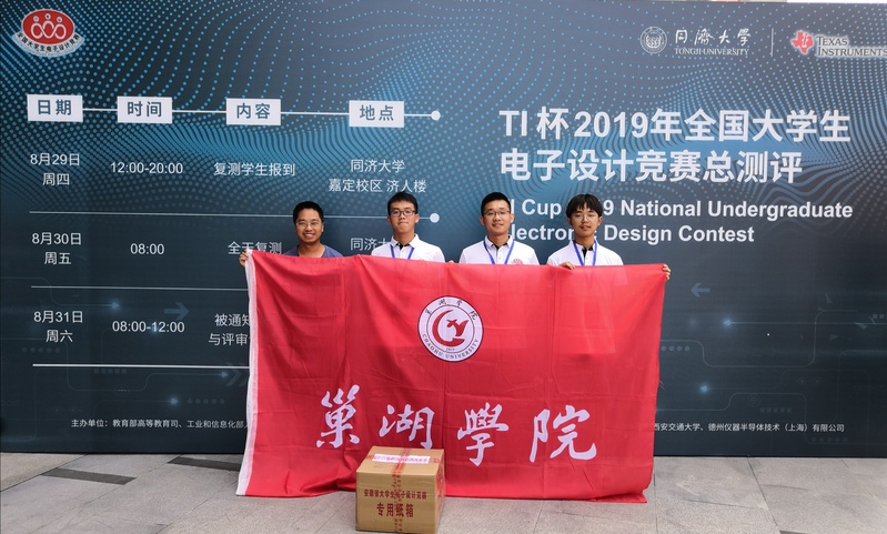 本次全国大学生电子设计竞赛安徽省赛由合肥学院承办,全国一等奖复测工作由上海同济大学(嘉定校区)承办。第一轮于8月7日至11日进行电子作品设计与制作;第二轮于8月14日至15日在合肥学院进行竞赛作品测试,评选后安徽赛区共推荐39支本科组队伍参加全国总决赛电子设计竞赛综合测评,我校有1支队伍获得推荐;第三轮于8月18日至19日在合肥学院进行“全封闭式”的电子设计竞赛综合测评,我校有1支队伍被推荐为全国一等奖;第四轮于8月30日-31日在同济大学进行全国一等奖复测。经过四轮选拔,我校学子张韦、戴礼宾和臧恒同学设计的“模拟电磁曲射炮”获得全国一等奖。同时另有三支队伍分别获得省级二等奖2项和省级三等奖1项。