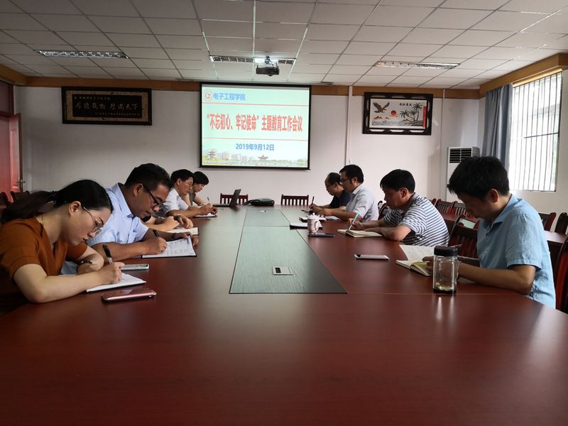 9月12日下午,电子工程学院在会议室召开“不忘初心、牢记使命”主题教育,贯彻落实学校会议精神,对学院主题教育工作进行动员部署。学院党政班子成员,党支部书记,党务行政秘书,团总支书记参加会议,会议由院党委书记陈海波主持。