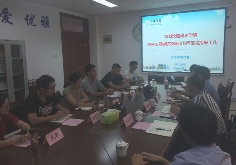 9月20日上午,电子工程学院一行赴安徽师范大学物理与电子信息学院交流学习。物理与电子信息学院党委书记李娟结合学院宣传片介绍了物电学院的基本情况,并着重介绍了学院分党委在抓领导班子建设、抓思想政治教育、抓基层党支部建设、抓党风廉政建设及抓和谐学院建设等方面的具体做法,强调要围绕中心抓党建。随后,副书记黄友生及团学工作人员分别就学生管理及团学工作中的一些典型做法和成功经验进行了详细介绍。会后,陈海波一行还参观了物电学院的学生创新实验室。