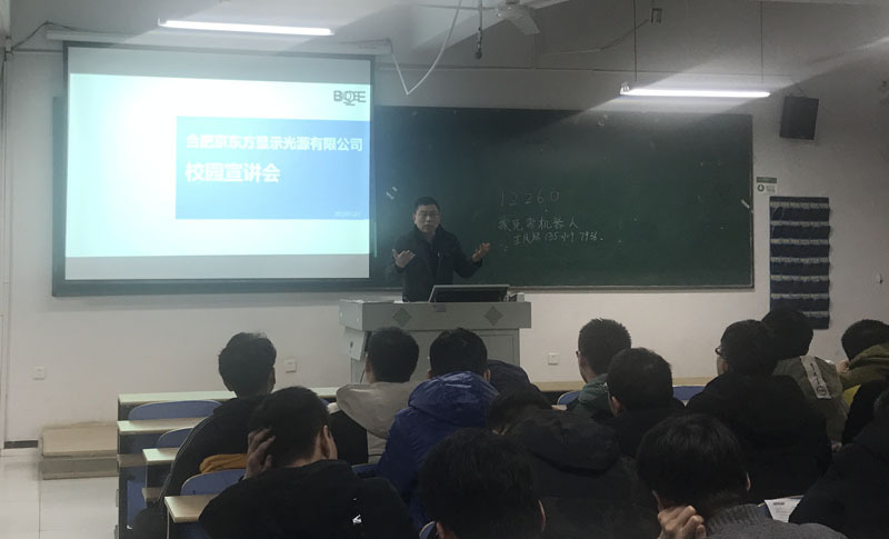随后,惠而浦股份有限公司、扬子空调有限公司、合肥京东方光源科技有限公司、美菱股份有限公司、合肥宏晶信息科技有限公司、上海昌硕有限公司、安徽埃克索医疗机器人有限公司等七家企业的招聘负责人就公司背景、公司文化、岗位需求、薪资待遇以及未来发展等为同学们做了详细的宣讲。