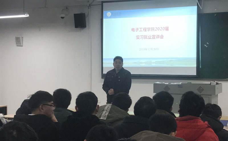 为给2020届毕业生提供更好的实习与就业机会,电子工程学院于12月26日邀请了七家省内外知名企业举办了2016级学生实习就业宣讲会,电子工程学院副院长叶松、副书记孔鲲鹏、毕业班辅导员及2020届毕业生近200人参加本次宣讲会。