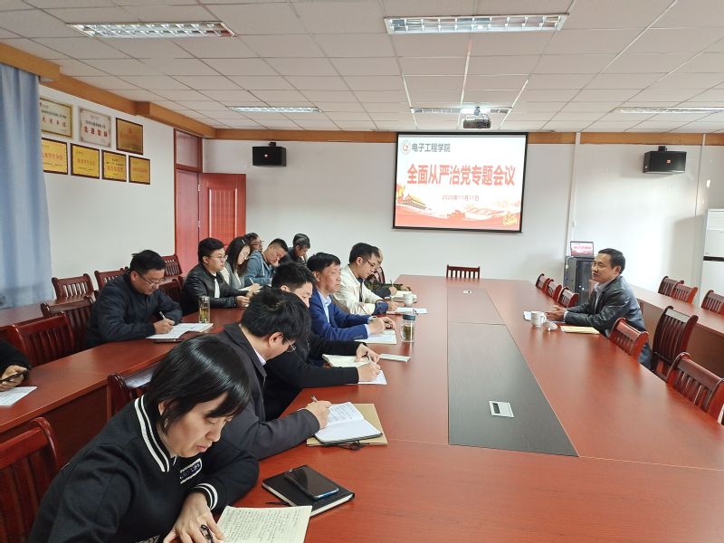 为落实全面从严治党主体责任和校党委全面从严治党工作部署,推进省委巡视整改工作,11月11日下午,电子工程学院分党委在学院会议室召开全面从严治党专题会议,校党委委员、副校长徐柳凡到会指导,学院领导班子成员、党委委员、支部书记、教研室主任、科级干部、专职辅导员参加了会议。会议由学院党委书记陈海波主持。