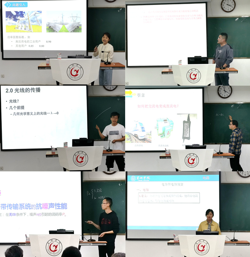 电子工程学院青年教师凌景、杜成名、徐建、王正创、许葛亮、乔欣分别结合自身讲授课程,分别以饱满的热情展示教学风采、切磋教学技艺,同时交流了课程思政的方式方法。活动中除了展现出教师的基本教学素养,也彰显了立德树人这一教学的根本任务。钱云与评委代表许明坤教授分别对参赛青年教师进行点评与总结发言,希望全院教师在授课中时刻思考育人问题,将课程思思政贯穿教学环节的始终。