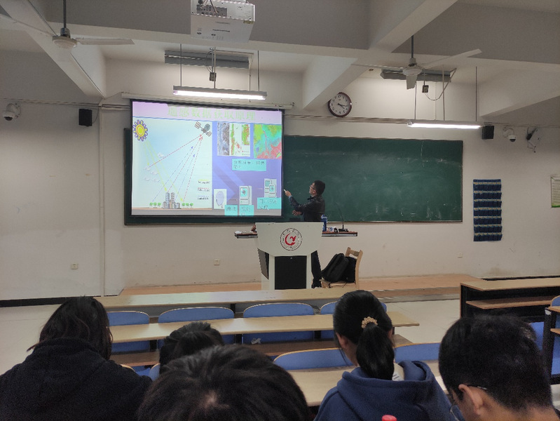 讲座伊始,范传宇博士通过PPT的形式介绍了遥感科学的基本框架,所涉及的学科和专业领域,又以图片形式向同学们展示了遥感科学在工农业生产、国防、军事等方面所发挥的重要作用,让同学们体会到了发展遥感科学的重要性和迫切性。紧接着,报告从遥感原理、数据采集、图像处理、数据关键信息提取以及遥感应用等方面介绍遥感科学与技术的主要研究方向,并就涉及的物理概念与知识做简要而精准的介绍,对于提高学生的学习兴趣,增强同学们投身国家高新技术事业的信心和决心有极大的促进作用。讲座结束后,范传宇博士与同学们进行了积极的互动交流,耐心解答了同学们提出的各种问题。