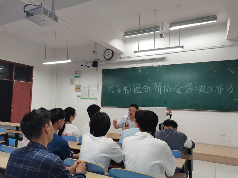 为规范大学物理创新协会各部门的工作,提高协会运作效率,电子工程学院大学物理创新协会于2022年5月22日晚8点半在慎思楼中502教室召开第二次工作交流会。协会会长任明阳主持了会议,协会各部门负责人参加了会议,协会指导老师笪诚教授到会指导。