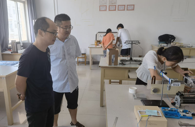2022年7月10日上午,电子工程学院党委副书记孔鲲鹏、大学物理创新协会指导老师笪诚教授到致知楼大学物理创新协会实验室走访看望暑期留校同学,了解协会学生对备战安徽省师范生技能竞赛(演示教具制作)的准备情况。