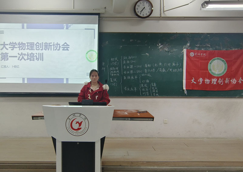 为了提高大学物理创新协会新成员的参赛技能技巧,推进协会工作高效开展,电子工程学院大学物理创新协会于11月6日晚7点在慎思楼中201教室举行2022-2023学年第一次培训会,本次培训由协会副会长蔡政主持,大学物理教研室主任,协会指导老师笪诚教授到会指导,协会全体成员参加了培训会。