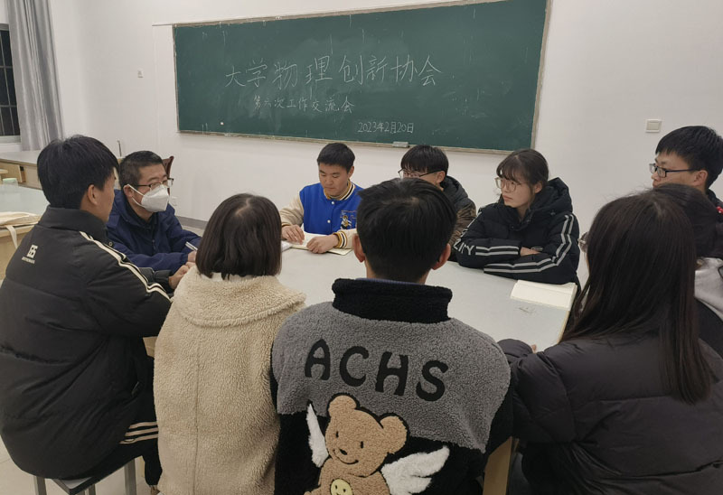 新学期伊始,为推进大学物理创新协会各项工作的开展,大学物理创新协会2022年2月20日晚19:00,在致知楼举行第六次工作交流会,会议由协会会长任明阳同学主持,大学物理教研室主任、协会指导老师笪诚教授到会指导。