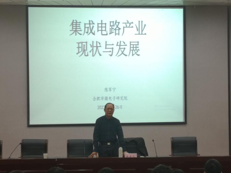 4月26日下午,安徽大学陈军宁教授应邀在致知楼报告厅做关于“集成电路产业现状与发展”的学术报告。院长叶松主持了报告会,学院部分教师、电子科学与技术专业和微电子科学与工程部分学生认真聆听了本次报告。
