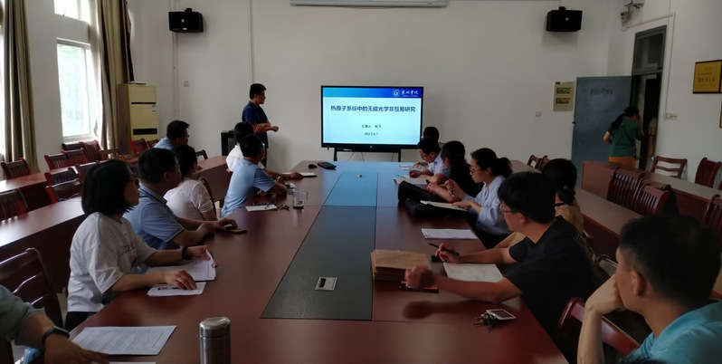 为加强教师间学术交流,推进学术团队建设,6月7日下午,电子工程学院电子信息系在致知楼会议室开展博士学术论坛,此次论坛由电信系宋飞博士作题为“热原子系综中无磁光学非互易研究”的学术报告。电信系全体教师参会,系主任刘双兵主持交流会。