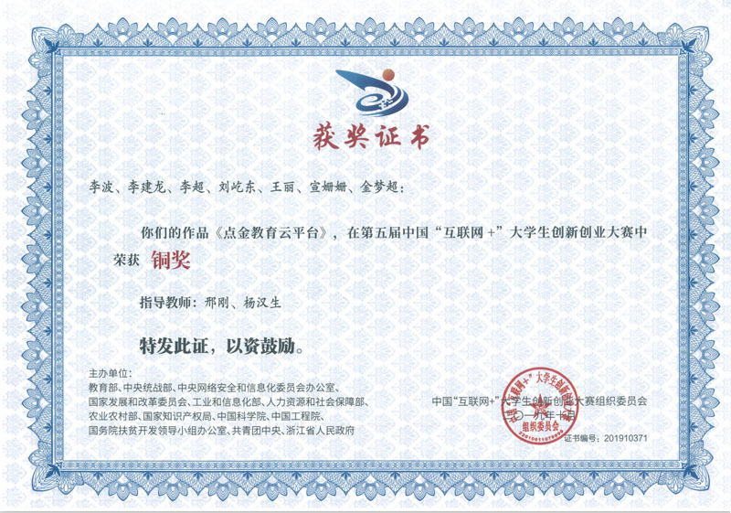 学生获第五届中国“互联网+”比赛全国铜奖