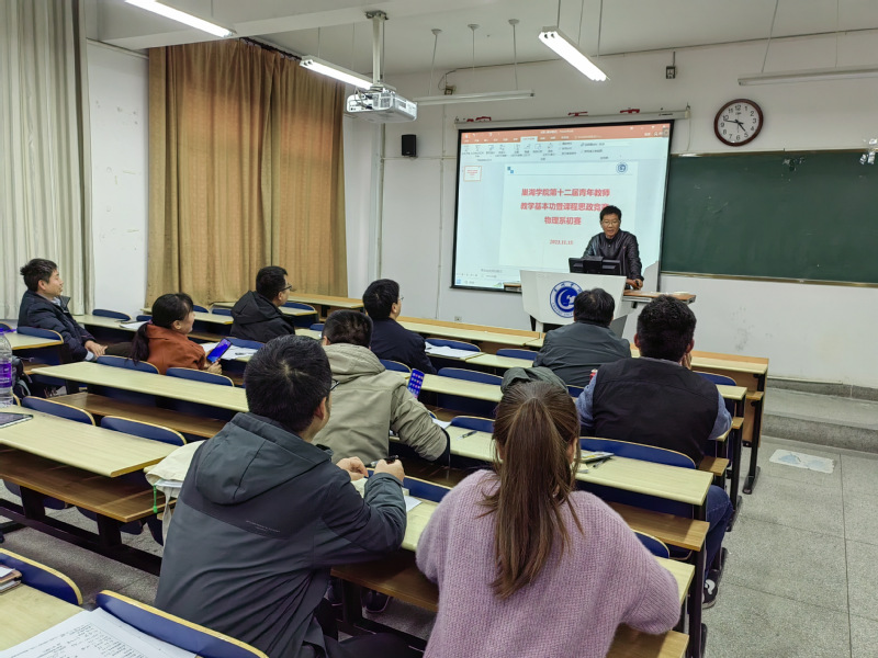 2023年11月15日下午,电子工程学院物理系在博学楼305教室组织开展了青年教师基本功暨课程思政竞赛。本次比赛由物理系主任范传宇主持,李永春等5位青年教师参加了比赛,物理系其他教师参与观摩,电子工程学院院长叶松作为评委应邀参加此次竞赛活动。
