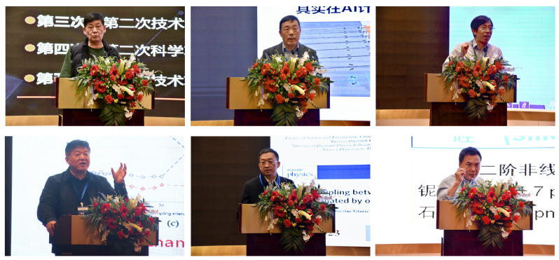 开幕式后,安徽省光学学会秘书长、中国科学院安徽光机所谢品华研究员和安徽省光学学会副理事长、中国科学技术大学王沛教授分别主持了大会主题报告。刘文清院士做了“双碳目标下,科技创新的机遇与挑战”的主题报告,浙江大学刘旭教授、南京大学王慧田教授、国防科技大学胡以华教授、太原理工肖连团教授、华东师范大学程亚教授分别做了题为“高通量激光直写三维纳米光刻技术”、“光场调控—从经典迈向量子”、“动态超分辨激光成像技术”、“基于胶体量子点的超聚束光场制备与调控”、“大规模铌酸锂光子集成”的主题报告。