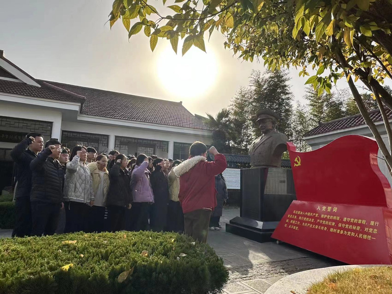 “我志愿加入中国共产党...随时准备为党和人民牺牲一切,永不叛党。”在李克农将军雕塑前,全体党员面对鲜红的党旗高举右拳,重温入党誓词。大家纷纷表示要不忘初心,牢记使命,为中华民族伟大复兴贡献青春力量。