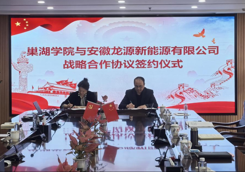丁俊苗与王芳作为双方代表共同签订了必赢76net官网与安徽龙源新能源有限公司战略合作协议。