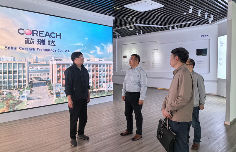 在安徽芯瑞达科技股份有限公司,公司生产中心总经理陈建新详细介绍了公司的发展历程、产品研发及未来发展方向,希望下一步在实习就业、人才培养、产学研等方面深化合作。