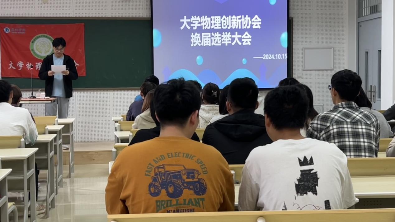 根据校团委和电子工程学院党委的部署,2024年10月15日中午,大学物理创新协会在崇学楼中303教室举办了社团换届大会。协会各部门干事以及会员近50人参会,协会指导老师杜成名到会指导,会议由许家乐主持。
