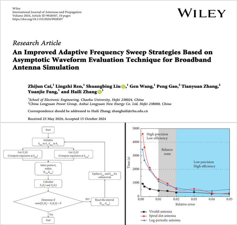 近日,电子工程学院电子科学与技术专业2021级本科生蔡志军在国际学术期《International Journal of Antenna and Propagation》(SCI收录)以第一作者发表了题为 “An Improved Adaptive Frequency Sweep Strategies Based on Asymptotic Waveform Evaluation Technique for Broadband Antenna Simulation” 的学术论文,电子工程学院张海力博士为该论文的通信作者与指导教师。