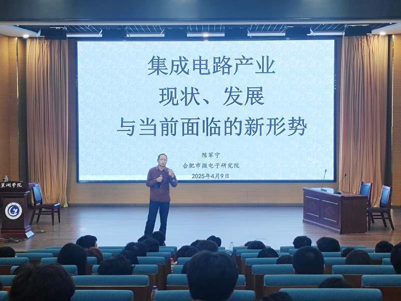 4月9日,电子工程学院在求实楼报告厅成功举办“集成电路产业现状与发展”专题报告会,特邀安徽大学陈军宁教授担任主讲嘉宾,张蓓蓓、朱娟娟、孙鹏宇、刘雪莹、王涛等集成电路产业专家出席会议。电子工程学院党委副书记刘雪刚、副院长方愿捷、电信系教师王秀英以及电子科学与技术、微电子科学与工程等专业学子参加了此次报告会。会议由方愿捷主持。