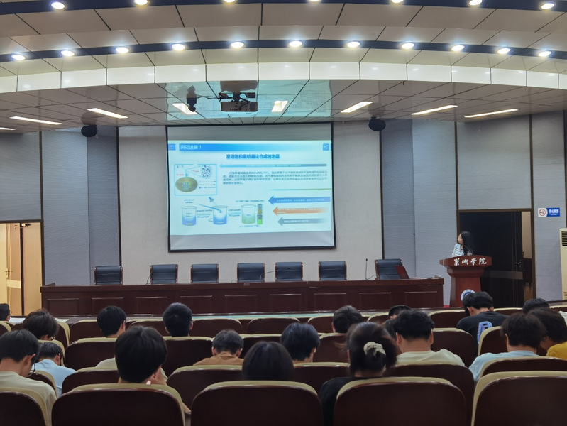 韩博士结合自身在纳米晶/量子点光电探测器方面的研究经历,以《基于CsPbBr3纳米晶的高性能稳定光探测器》为主题,深入浅出地阐释了全无机钙钛矿CsPbBr3纳米晶基光电探测器的性能优化研究思路,采用了钝化缺陷、促进载流子传输、拓宽光谱响应范围、优选电极等方面协同研究方法,获得了高性能、宽光谱、低成本的稳定光电探测器研究成果,为柔性电子器件的应用提供了新思路,为解决传统光探测器的难题提供了新途径。报告会后,与会师生同韩博士就科学研究细节、钙钛矿稳定性及其产业化应用等方面展开了热烈的互动交流。