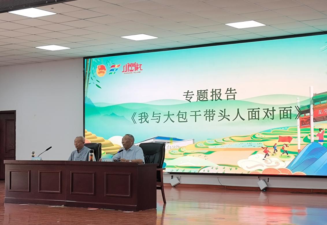 为传承“小岗”精神,助力乡村振兴,实践团参加了“我与大包干带头人面对面”专题报告、“深化农村改革的小岗村之路”座谈会及社会实践专项辅导。专题报告由两位大包干带头人——严金昌先生与关友江先生主讲。在小岗村这片点燃中国农村改革火种的土地上,严金昌与关友江两位老人的名字,犹如熠熠生辉的坐标,镌刻着改革的勇气与时代的烙印。