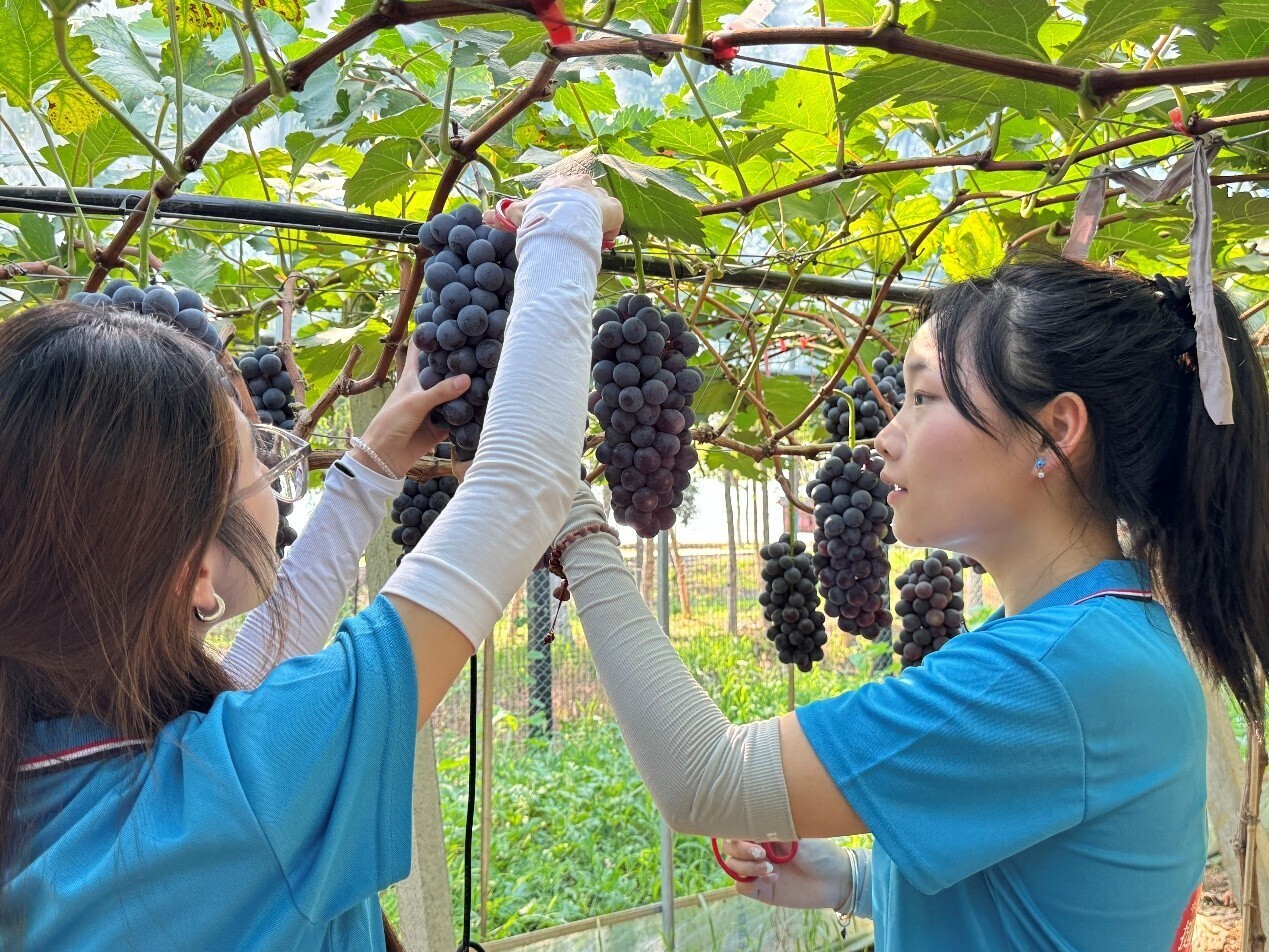 为深入调研乡村产业发展与赋能、产业链升级与运营,实践团成员实地探访匠心葡萄园、盼盼食品、小岗村电商直播孵化基地等,探索智慧农业,解码智慧粮仓。在匠心葡萄园,实践团成员深入田间地头,实地考察了智能灌溉系统和精准农业技术的应用,目睹了物联网传感器如何实时监测土壤湿度与光照,优化葡萄生长周期,大幅提升产量与品质;随后,在盼盼食品有限公司的现代化加工车间,他们详细了解了农产品精深加工流程,包括自动化分拣、冷链物流及品牌营销策略,深刻体会到产业链的延伸如何赋能初级农产品增值,推动乡村经济从“种得好”向“卖得好”转型;接着,在小岗村电商直播孵化基地,团员们亲身参与直播带货模拟,学习短视频营销技巧,见证了电商平台如何打破地域限制,将本地特色农产品销往全国,打造“网红经济”新引擎。通过这些沉浸式体验,实践团不仅解码了智慧粮仓的数字化管理模式——如大数据分析预测产量、区块链技术保障食品安全,还切身感受到智慧农业在降本增效、绿色可持续方面的突破性变革,从而全景式把握了现代农业的科技赋能路径,为乡村振兴注入新动能。