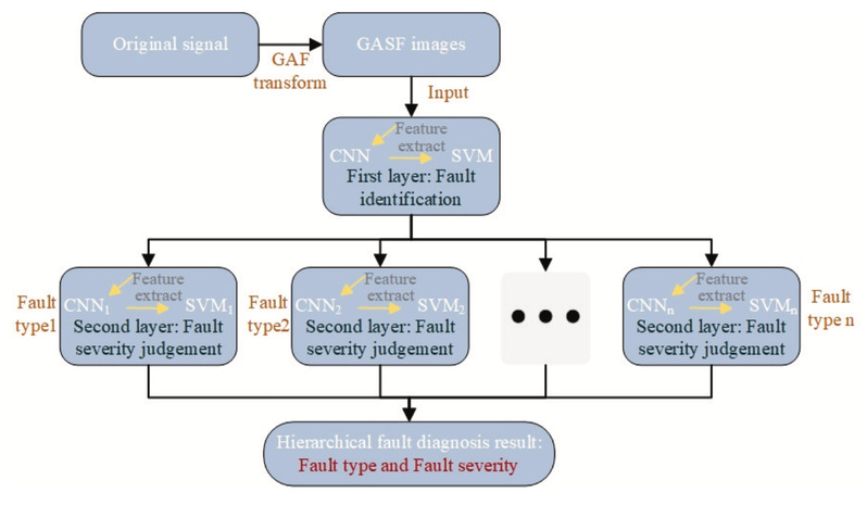 压阻式压力传感器应用范围日趋广泛且工作环境复杂,现代社会对其可靠性的要求越来越高。然而,由于其材料特性和工作原理,压阻式压力传感器中不同内部组件退化所导致的故障表现出高度相似性,主要体现在传感器输出灵敏度系数和信号非线性失真的变化上。这给压阻式压力传感器的故障诊断带来了一些挑战,包括如何有效提取能够表征不同故障的特征、如何准确识别故障以及如何判断相应故障的严重程度。为解决上述关键问题,该文提出了一种基于格拉姆角场(GAFs)和卷积神经网络(CNN)融合支持向量机(SVM)的分层故障诊断(HFD)方法。首先,根据功能区域定义压阻式压力传感器的故障类型。其次,采用GAF对传感器的原始输出信号进行编码,解决原始信号中故障特征较弱的问题。然后使用CNN提取由GAF转换得到的格拉姆角求和场(GASF)图像的特征。此外,将SVM作为与CNN展平层相连的分类器。最后,提出了一种HFD架构来实现故障识别和故障严重程度判断。实验结果表明,提出的方法能够有效提取特征,准确识别压力传感器的不同故障,并判断故障的严重程度。故障识别准确率达到99.34%,严重程度判断最高准确率达到98%。
