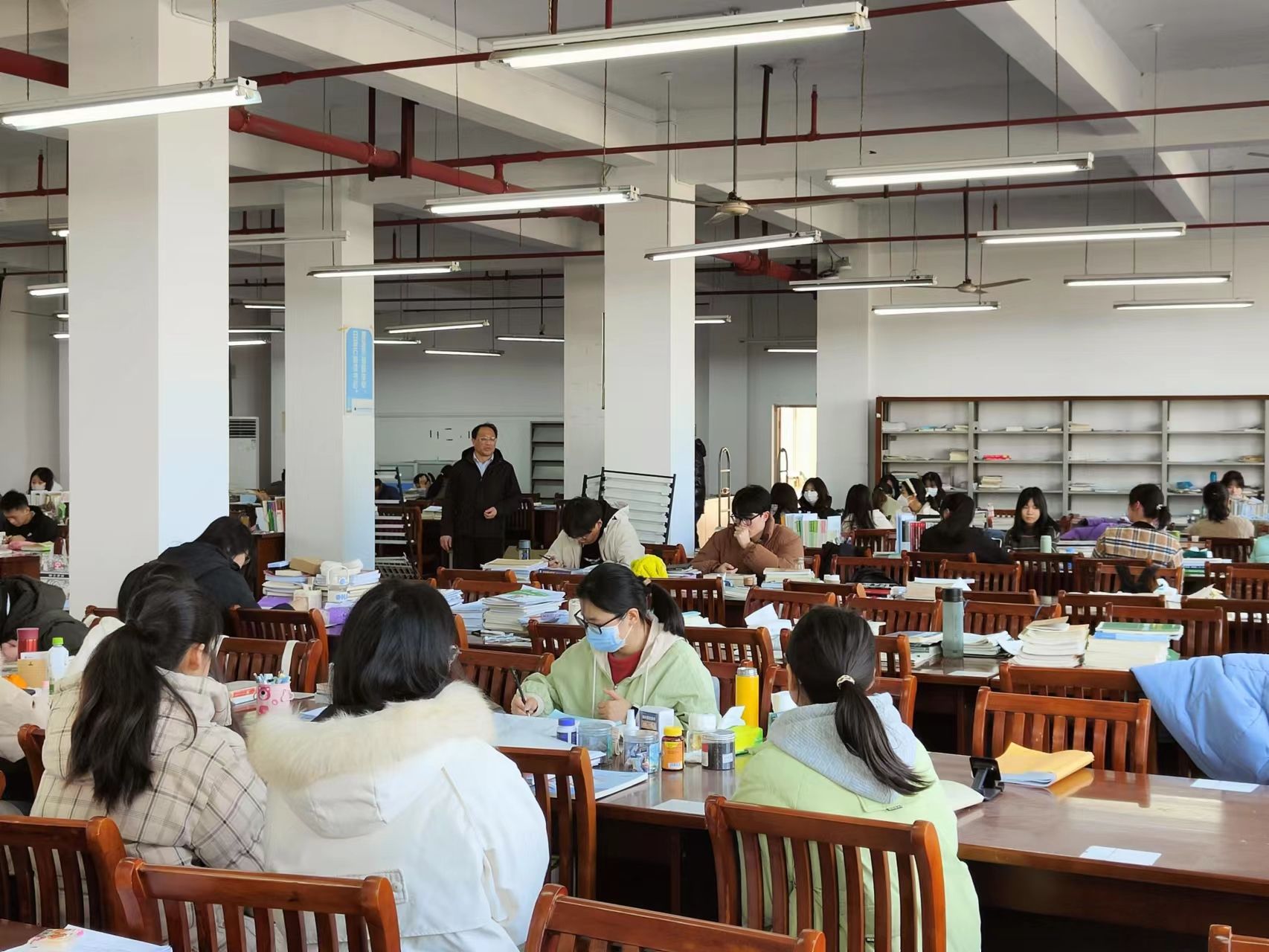 12月1日上午,文津校区图书馆四楼考研自习室,经济系党总支书记、系主任龚基云,副书记李运鑫以及毕业班辅导员老师一起慰问2024届考研的同学们。