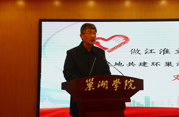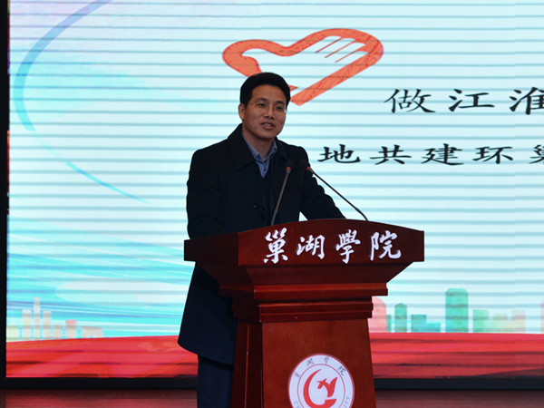 阮爱民代表学校在讲话中指出,近年来,我校各级团组织围绕学校中心工作,服务大局,组织广大青年学子积极参与各类志愿服务活动,立足校园,服务社会,在爱心助学、脱贫攻坚、环境保护等方面做出了积极贡献,取得可喜成绩,这离不开广大志愿者的辛勤付出和社会各界的支持。他强调,推进校地共建志愿服务行动是培育和践行社会主义核心价值观,加快实现精神文明创建,激发高校育人活力,服务地方发展的有效途径,今后学校要加快提升志愿服务内涵,希望广大青年要提高认识,志存高远;希望各学院、各级团组织牢记使命,不负众望,深入扎实地开展好志愿服务活动;希望社会各界都来关心支持志愿服务事业;希望环巢湖“一院一镇一品”志愿服务行动能够形成品牌。
