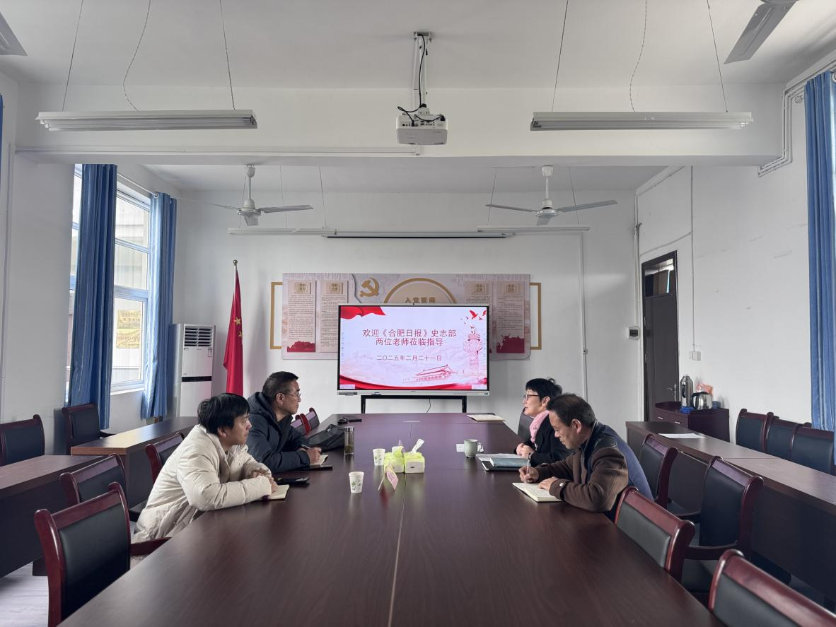 2月21日,《合肥日报》人文史志部主任程堂义一行来环巢湖研究中心调研,中心副主任雷若欣与其进行了座谈交流。