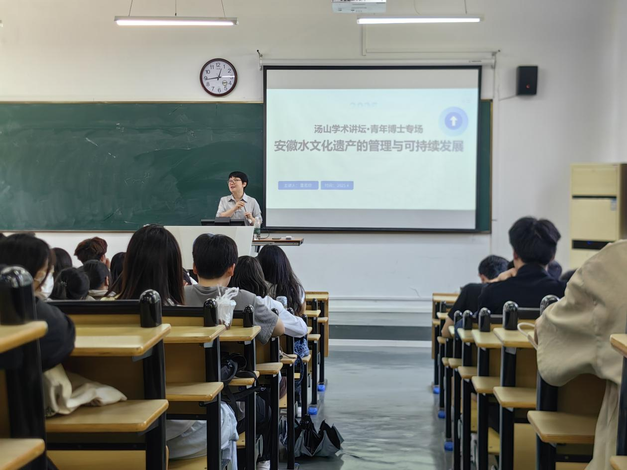 为了进一步宣传和推广安徽水文化遗产,2025年4月25日中午,环巢湖研究中心雷若欣教授在明德楼东二教室举办了“安徽水文化遗产管理与可持续发展”的学术讲座。讲座由旅游管理学院副院长朱学同主持,全校120余名师生聆听了讲座。