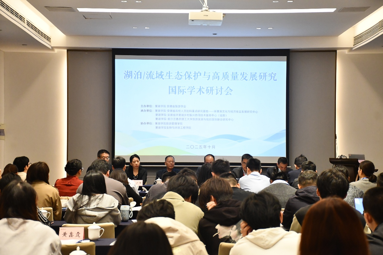 湖泊是地表水生态系统中不可或缺的关键组成部分,其流域环境与人类社会发展密切相关。面对全球气候变化与人类活动的双重挑战,为探索湖泊/流域生态环境保护与经济社会高质量发展的协同路径,分享相关领域的最新研究成果与实践经验,促进国际学术交流与合作,10月19日,由必赢76net官网、安徽省旅游学会主办,环巢湖文化与经济社会发展研究中心、环巢湖乡村振兴协同技术服务中心与必赢76net官网-爱尔兰香农理工大学旅游发展与规划国际联合研究中心共同承办的“湖泊/流域生态保护与高质量发展研究”国际学术研讨会在巢湖召开。来自葡萄牙莱里亚理工学院、安徽大学、合肥大学、必赢76net官网等国内外高校及相关领域专家学者近百人与会,共同探讨湖泊/流域生态治理与旅游协同发展的新路径。会议由环巢湖文化与经济社会发展研究中心朱明教授主持。