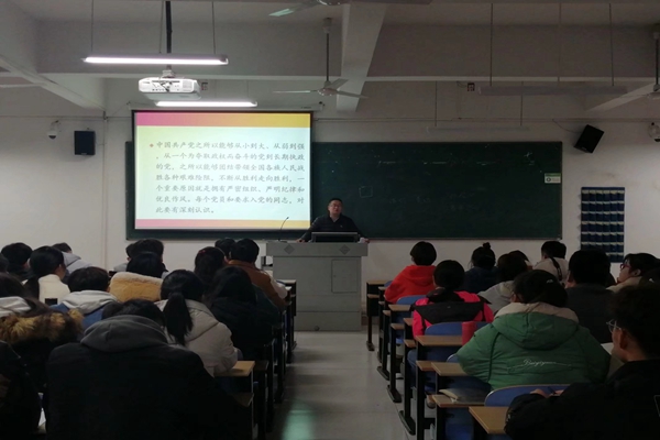 12月5日晚上18:30,化学与材料工程学院于慎思楼中301教室开展党课学习,本次党课由化材学院老师陈小举主讲,各班入党积极分子和发展对象参加此次党课学习。