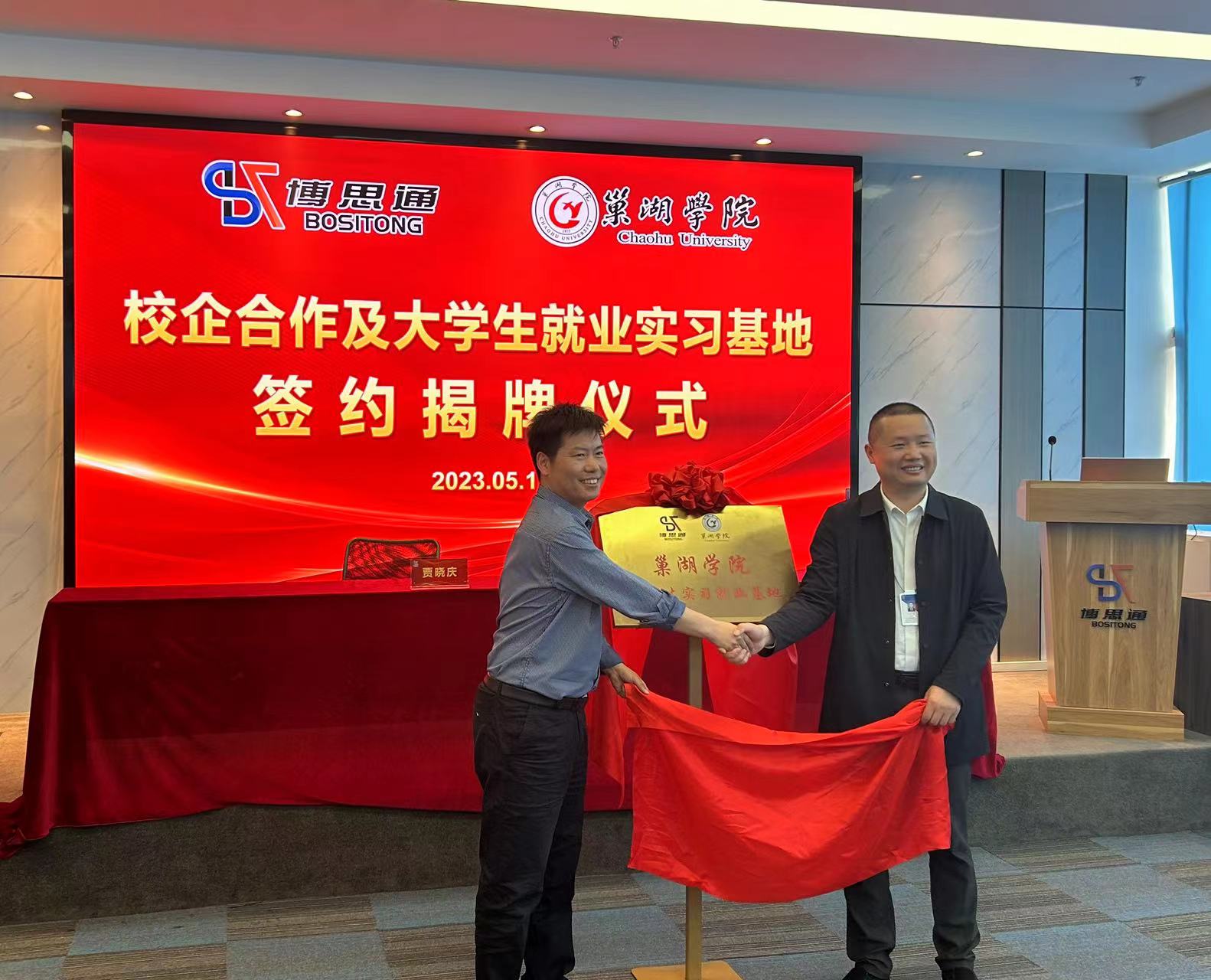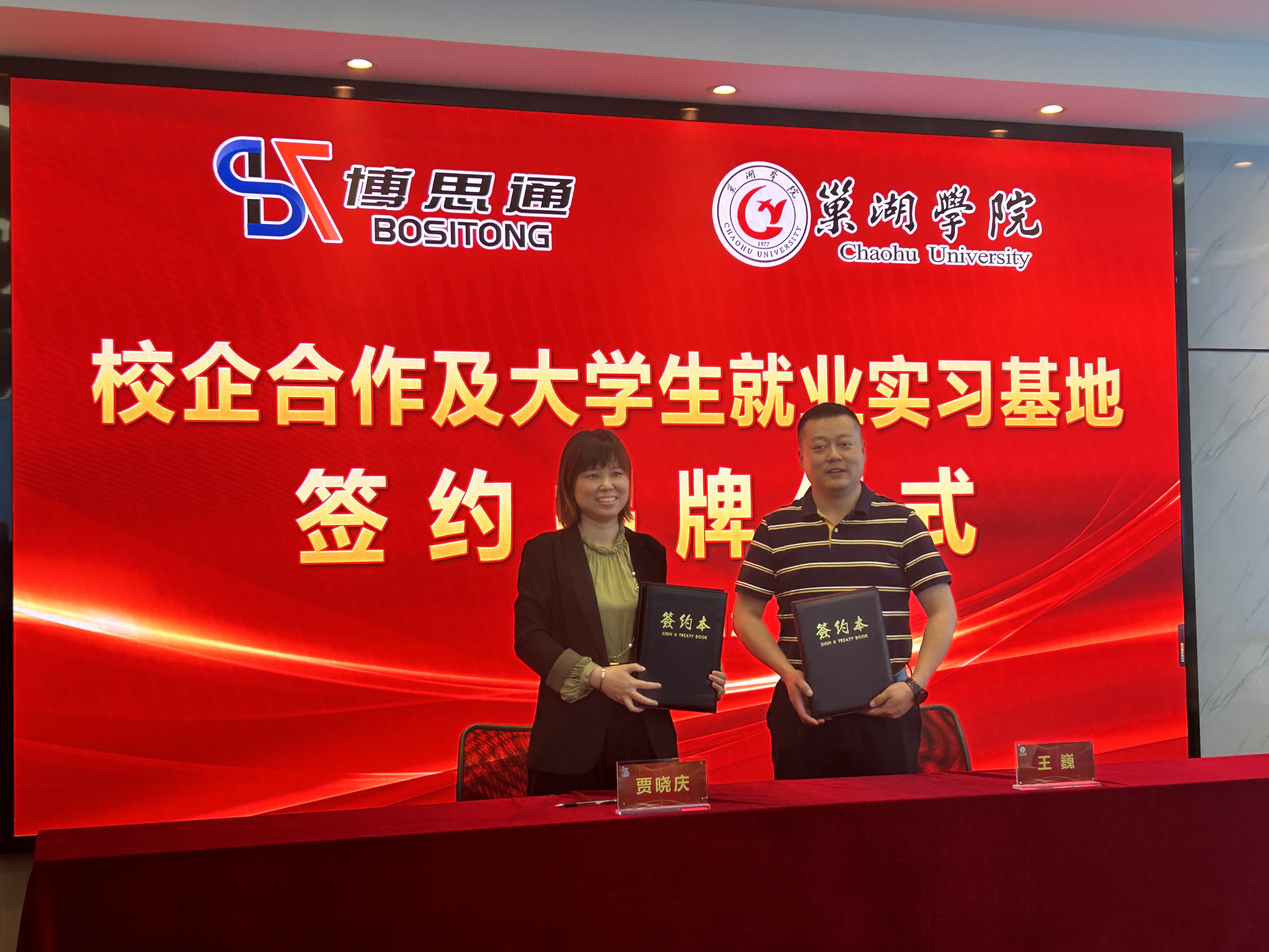 王巍与南京博思通新材料有限公司常务副总贾晓庆,分别代表校企双方签订《必赢76net官网实习就业基地合作协议书》。