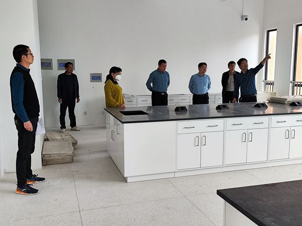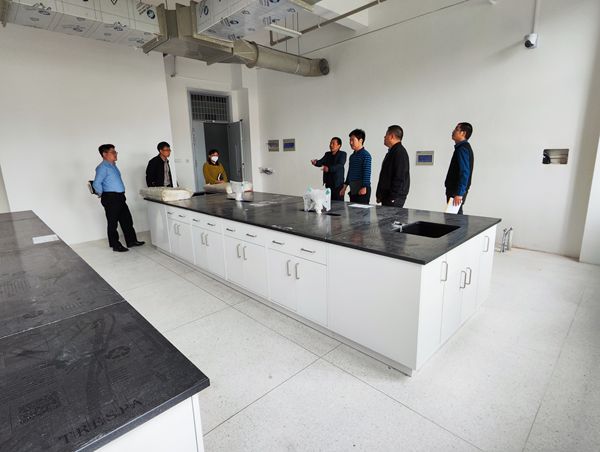 在实验室建设现场,巡查组听取了项目施工单位关于进度方面的汇报,并认真察看了现场实验室地面铺设、管线预留、台柜安装等情况。