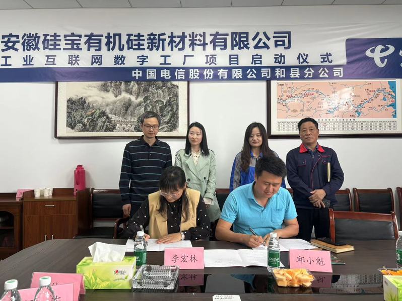 4月29日下午,化材学院副院长李宏林、应用化学系主任秦国旭、骨干教师程东和朱超杰一行赴安徽硅宝有机硅新材料有限公司洽谈合作。双方在硅宝有机硅新材料有限公司会议室举行座谈会,硅宝有机硅新材料有限公司总经理邱小魁、副总经理刘永生、生产技术部经理孙佳丽出席会议。