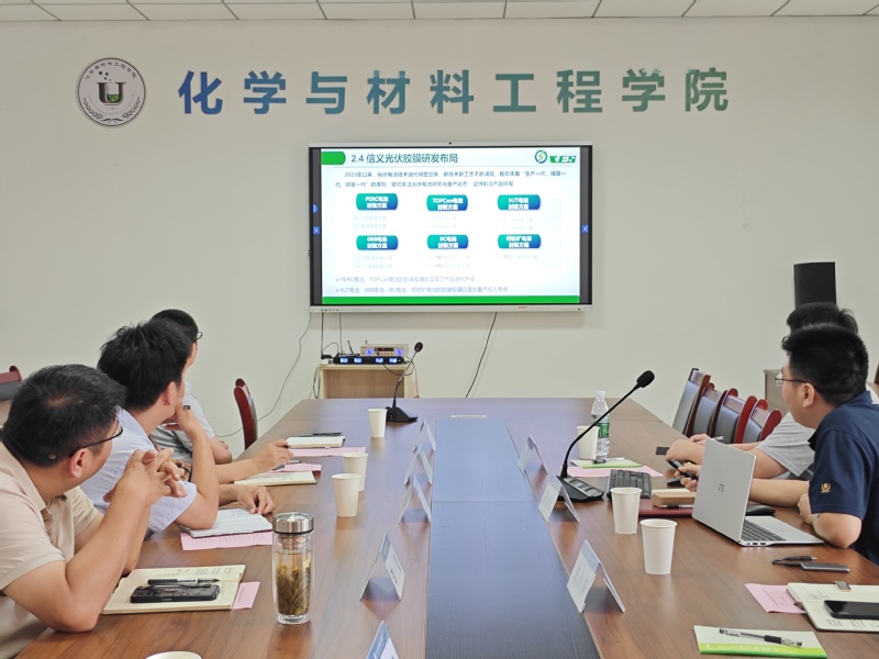 随后,聂智军介绍了信义集团发展历史、集团产业布局及安徽信义新能源材料有限公司的主要产品及研发方向,重点介绍了异质结电池封装项目中转光膜的技术痛点和技术需求。他谈到安徽信义新能源材料有限公司研发在生产研发和储备产品研发上投入了大量的人力、物力与财力,取得了一系列成果,表达了在转光膜质量提升方面与学院合作的深切期待。